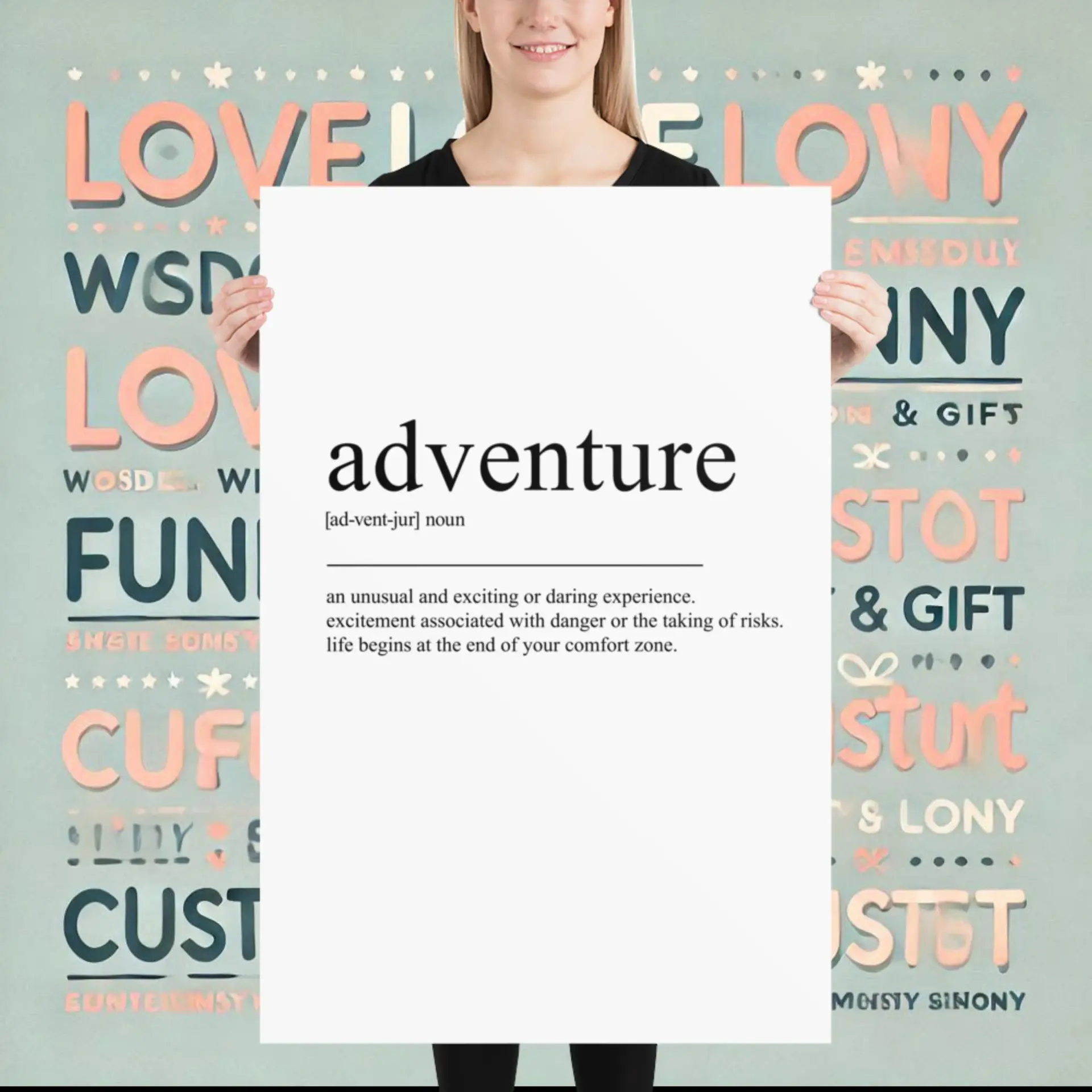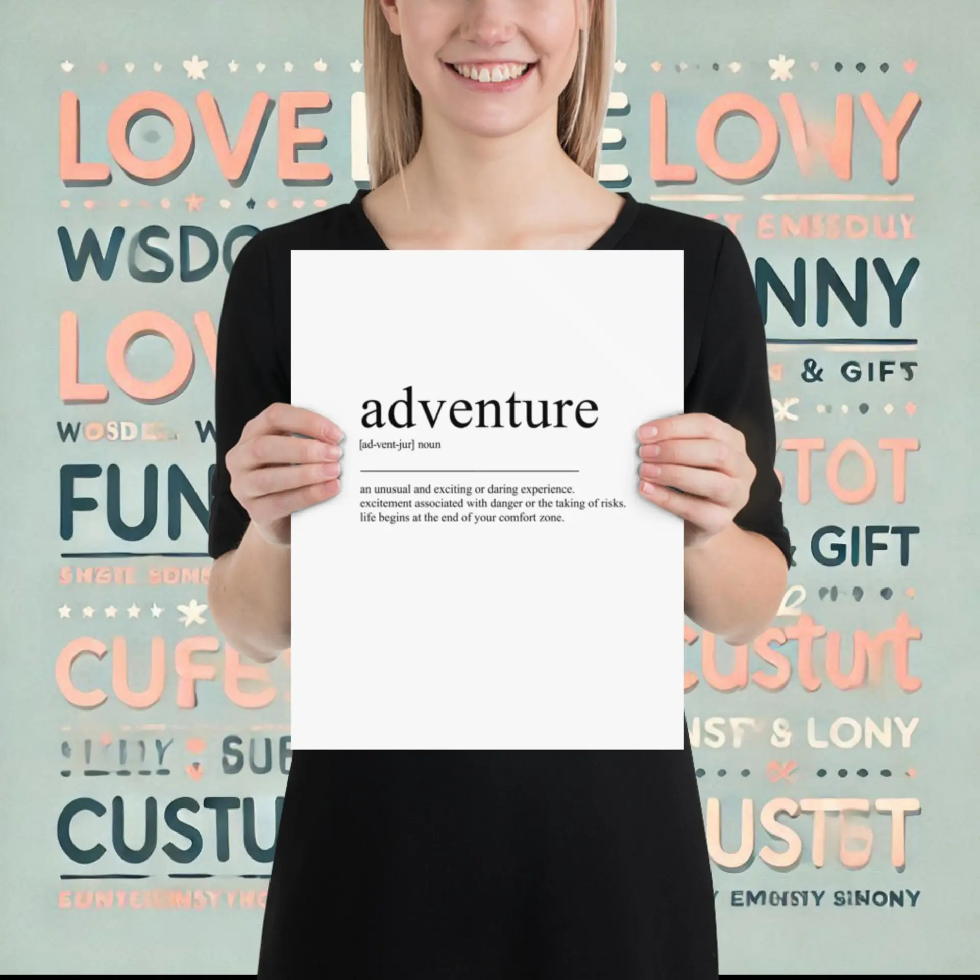 Make your walls speak with the adventure typography wall poster (inch). Printed on premium matte paper, this piece creates focus and style. Order now and start your adventure. Gift it to friends who love the journey. Let your decor reflect your mindset.