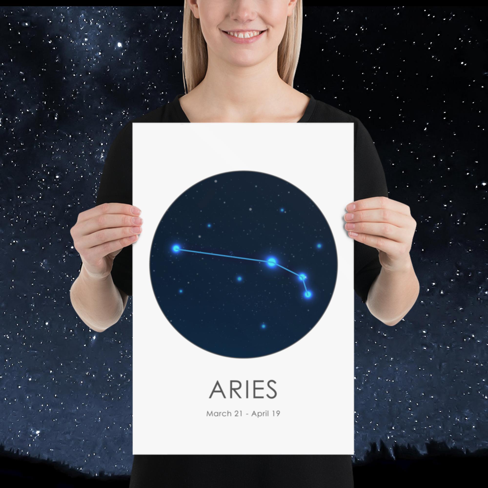 Celebrate your star sign with the Aries sign poster (inch). Printed on premium matte paper, this artwork delivers quality and meaning. Add it to your cart now. Gift it to your favorite Aries or keep it as your personal zodiac statement.