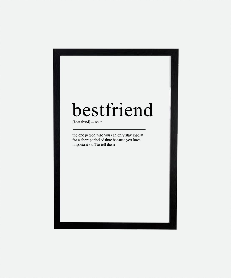 Celebrate friendship with the bestfriend typography poster (inch). Printed on high-quality matte paper, this poster delivers heartfelt words and clean design. Add it to your cart now. Gift it to your best friend or keep it as a daily reminder of your closest connection.