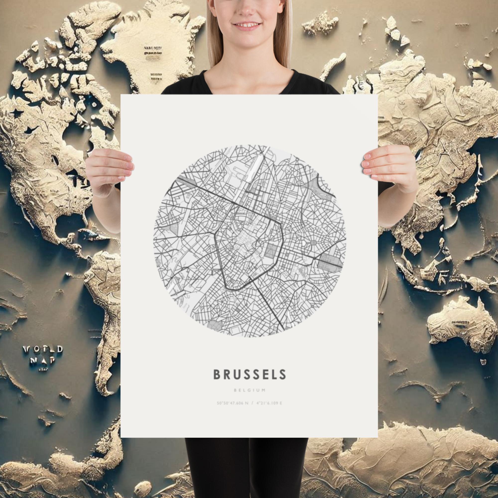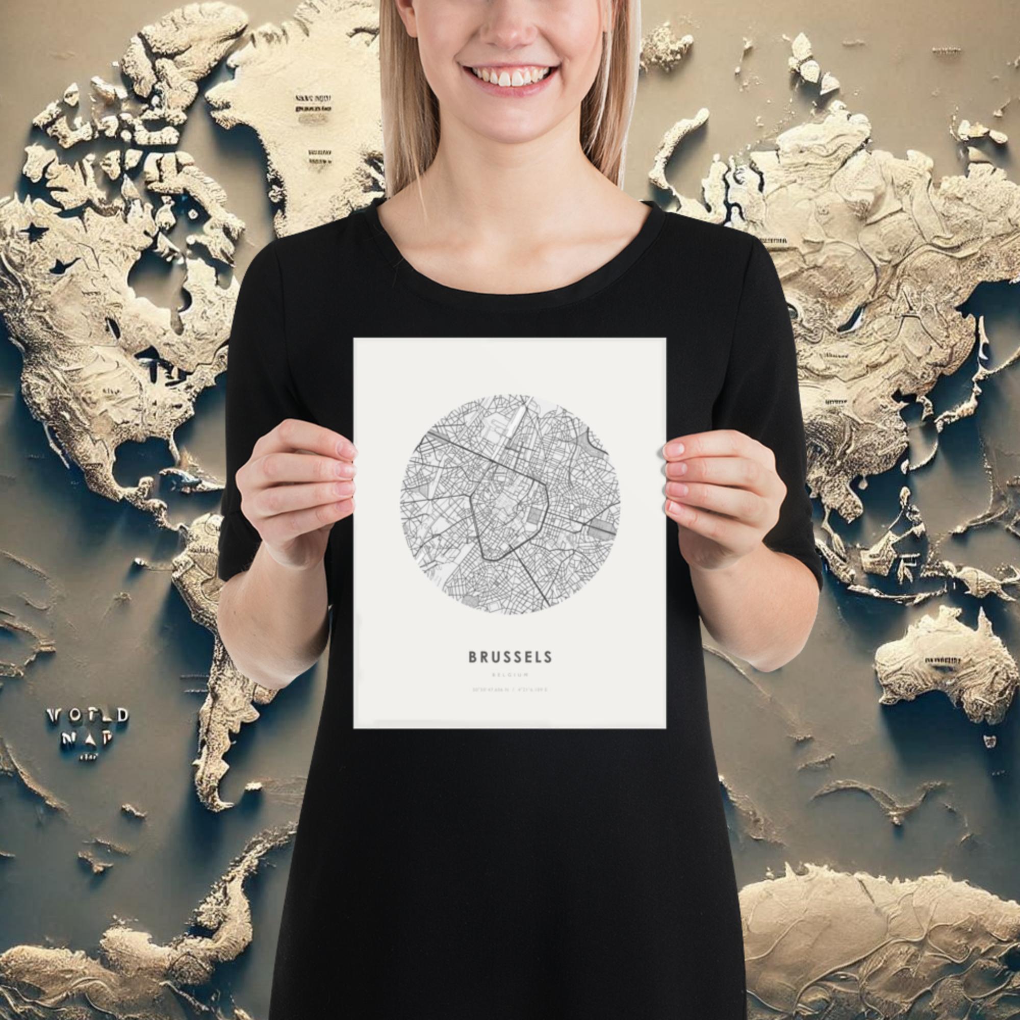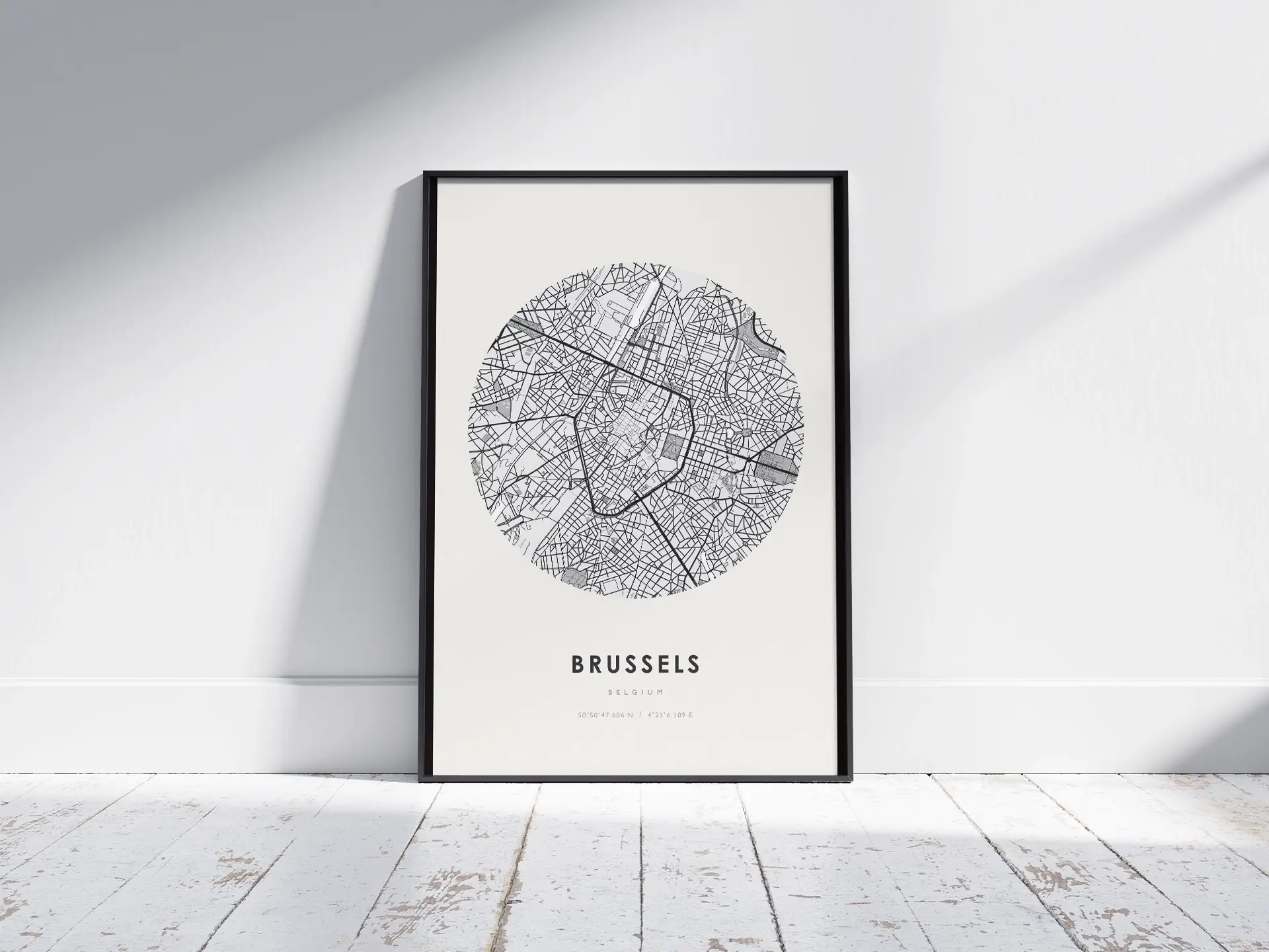 Celebrate the heart of Europe with this beautifully designed Brussels citymap poster (inch). Known for its grand architecture, vibrant neighborhoods, and rich culture, Brussels is artfully captured in a sleek circular street map that blends timeless elegance with modern style. Choose your favorite size and order today. Frame it for elegance or keep it raw for a modern feel.