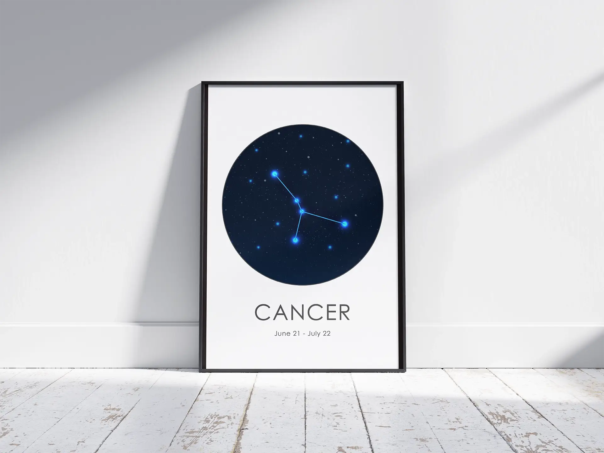 Celebrate your star sign with the Cancer zodiac sign poster (cm). Printed on premium matte paper, this piece delivers quality and style. Add it to your cart now. Gift it to a Cancer friend or keep it as your personal zodiac statement.