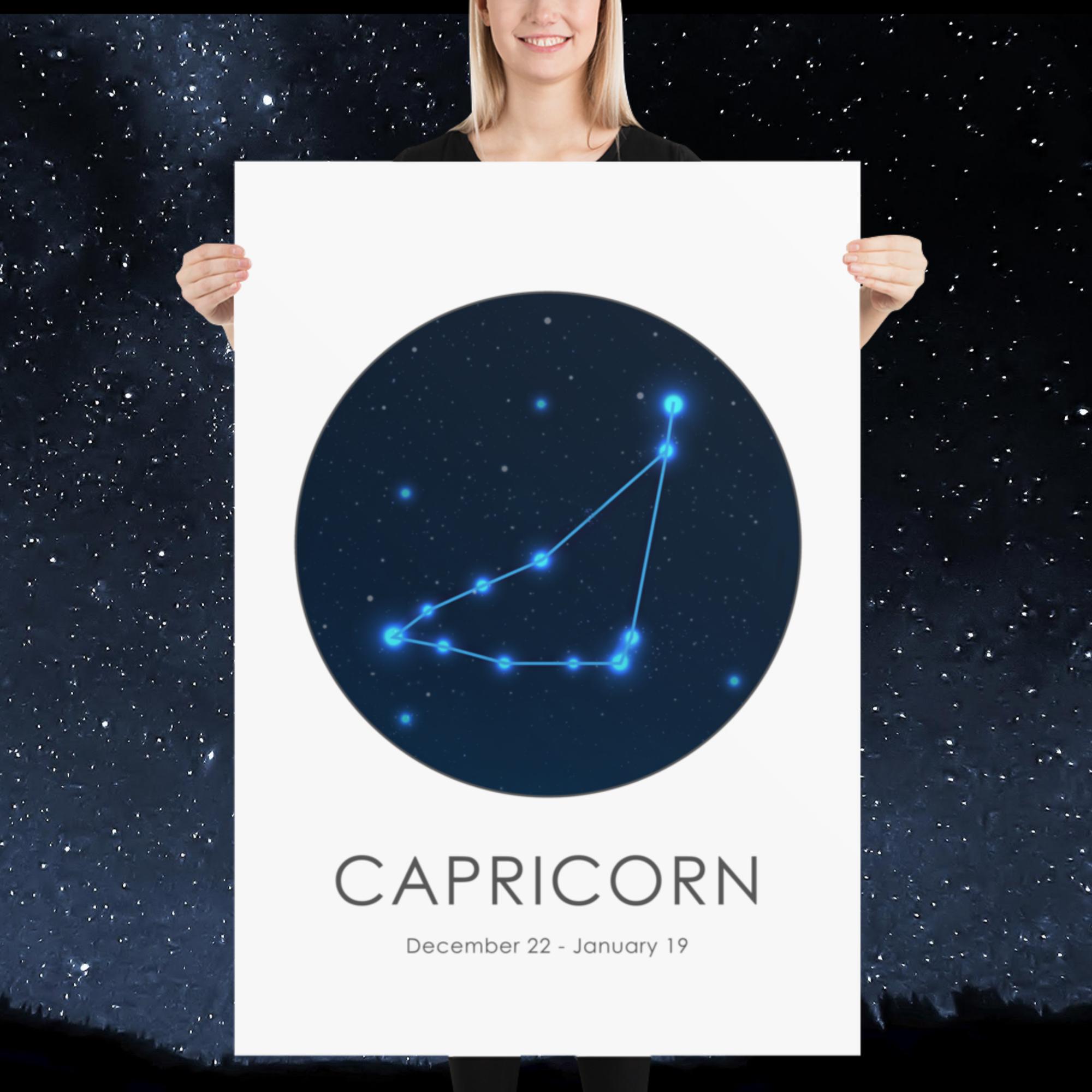 Celebrate your star sign with the Capricorn zodiac sign poster (cm). Printed on premium matte paper, this poster combines quality and style. Add it to your cart now. Gift it to a Capricorn friend or keep it as your own zodiac statement.