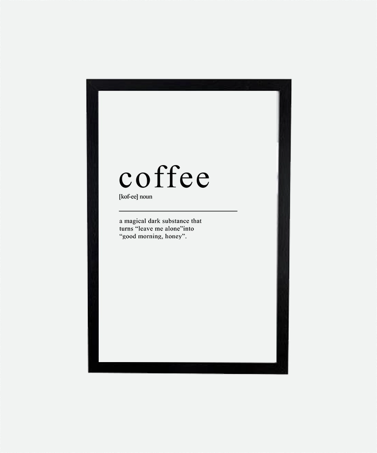 The funny coffee typography poster (cm) delivers caffeine-inspired humor to your walls. This bold black text design brings energy and personality to your space. Choose your favorite size and place your order today. Frame it for elegance or keep it unframed for a clean, modern look.
