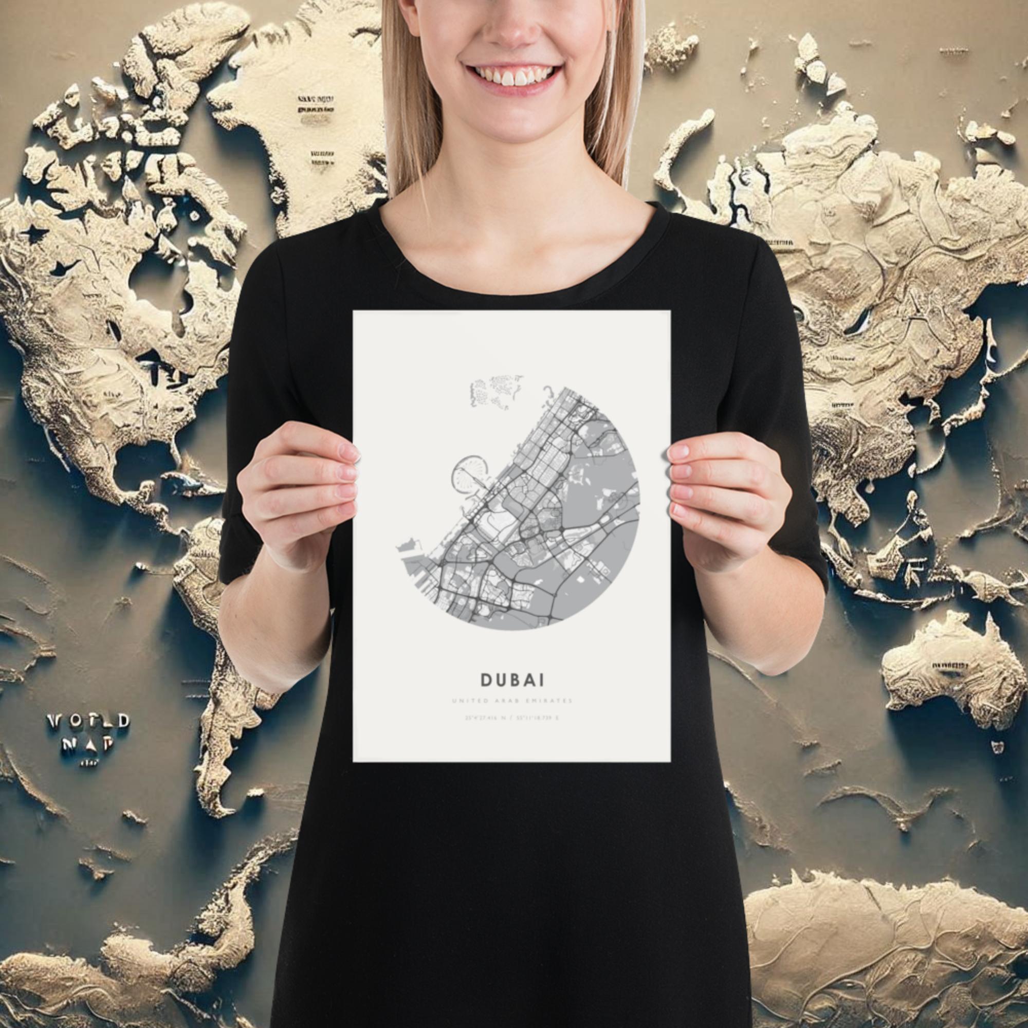 Capture the modern marvel of Dubai with this sleek, frameless citymap poster (cm). Featuring a precise street layout in a clean circular design, this minimalist print reflects the bold architecture, innovative spirit, and cosmopolitan energy that define the city.