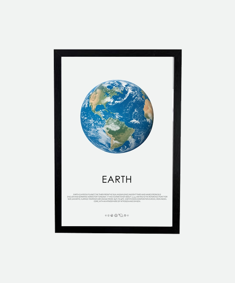 The Planet Earth poster (inch) brings home our most familiar and beloved world. Earth is more than a planet—it’s our origin, our story, and our shared space. This minimalist design honors its balance and beauty with clean lines and quiet detail.