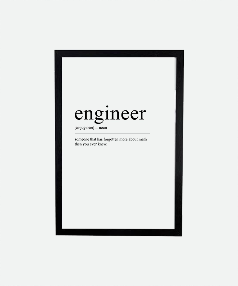 The Engineer typography definition poster (cm) celebrates the creativity and problem-solving skills of every true engineer. Featuring bold black text on premium white matte paper, this design adds character to any space. Choose your preferred size and place your order today. Frame it for a sharp look or hang it unframed for modern simplicity.