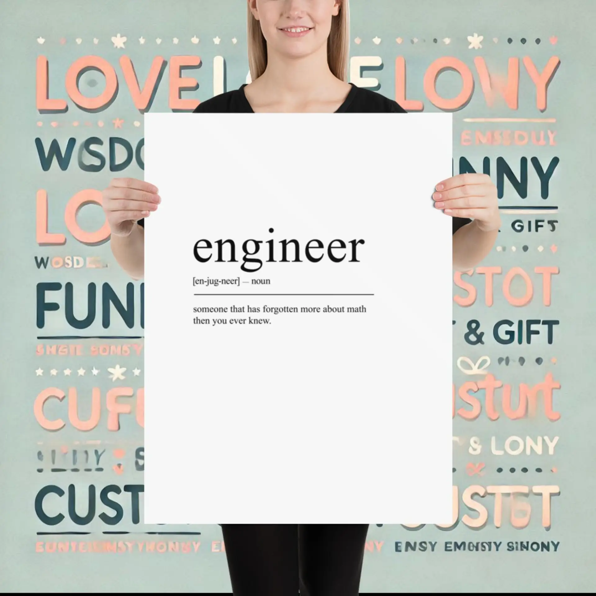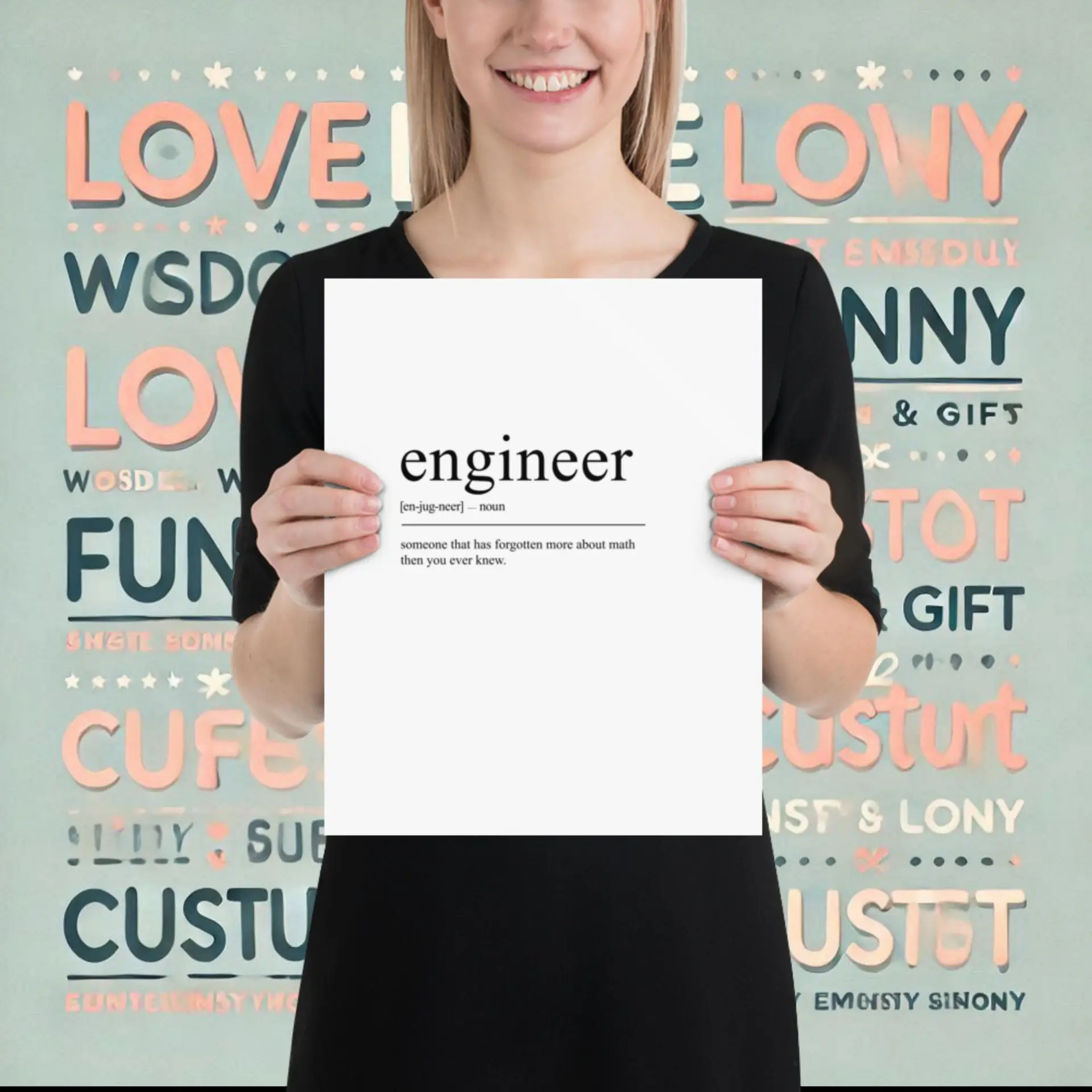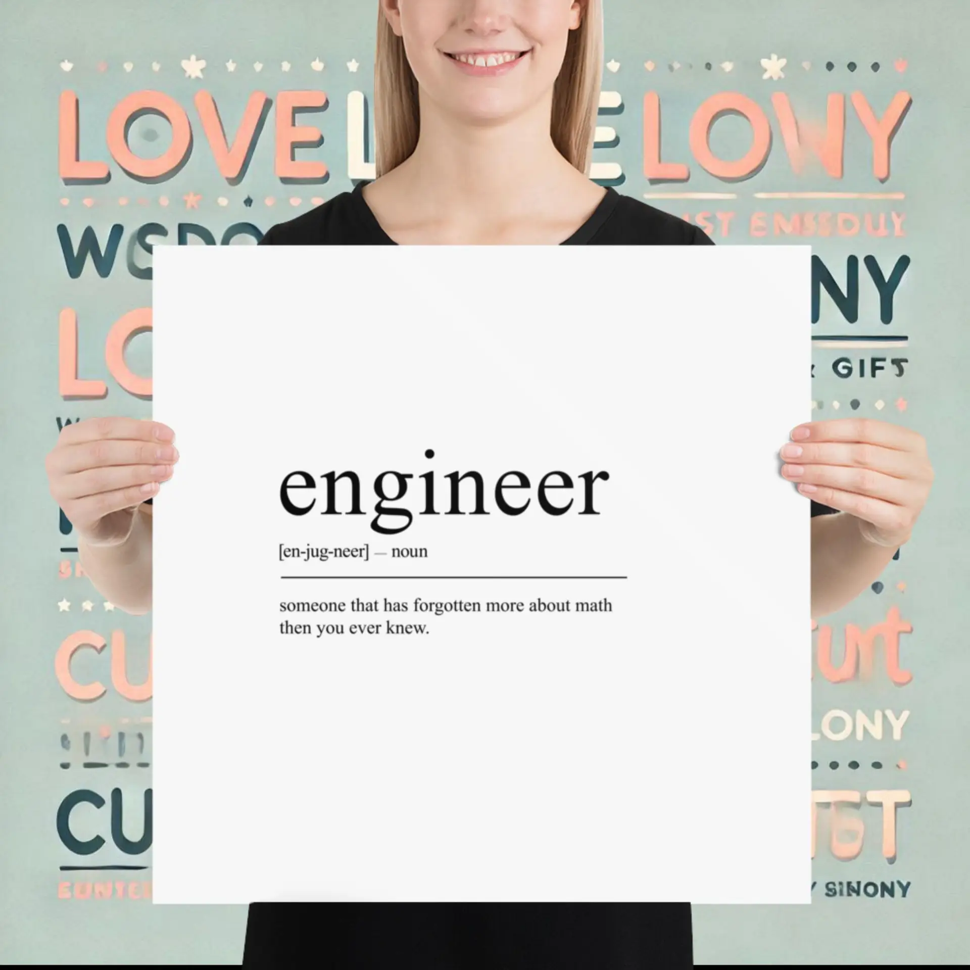 Celebrate innovation with the Engineer typography definition poster (inch). Printed on thick matte paper, this poster inspires daily creativity. Add it to your cart now. Gift it to engineers, students, or tech enthusiasts.