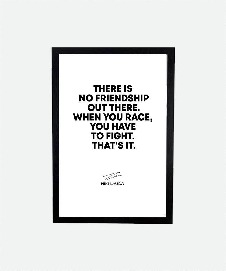 This striking F1 There is no Friendship Out There poster (cm) features one of the most iconic quotes in motorsport history from three-time Formula 1 World Champion Niki Lauda.