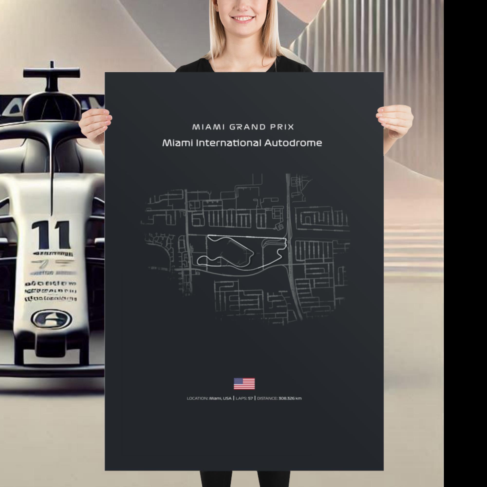 Printed on premium matte paper, the F1 USA Miami Circuit poster (cm) is perfect for F1 fans who love fast racing, flashy vibes, and modern street circuits.