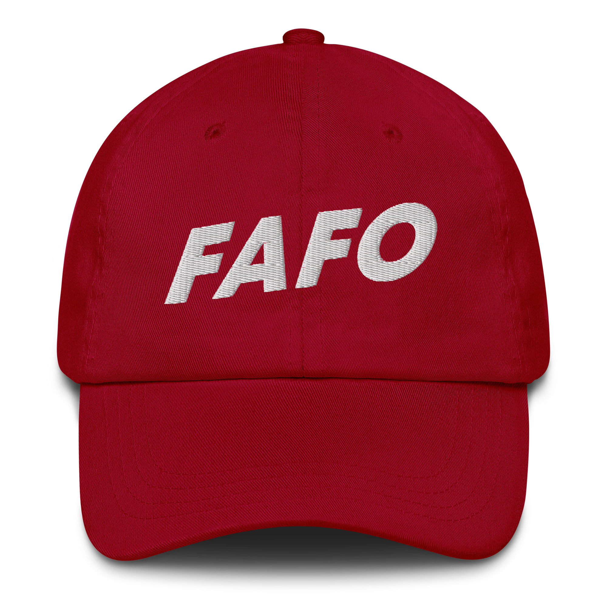 FAFO Dad hat white isn’t just for dads. This one’s got a low profile with an adjustable strap and curved visor.