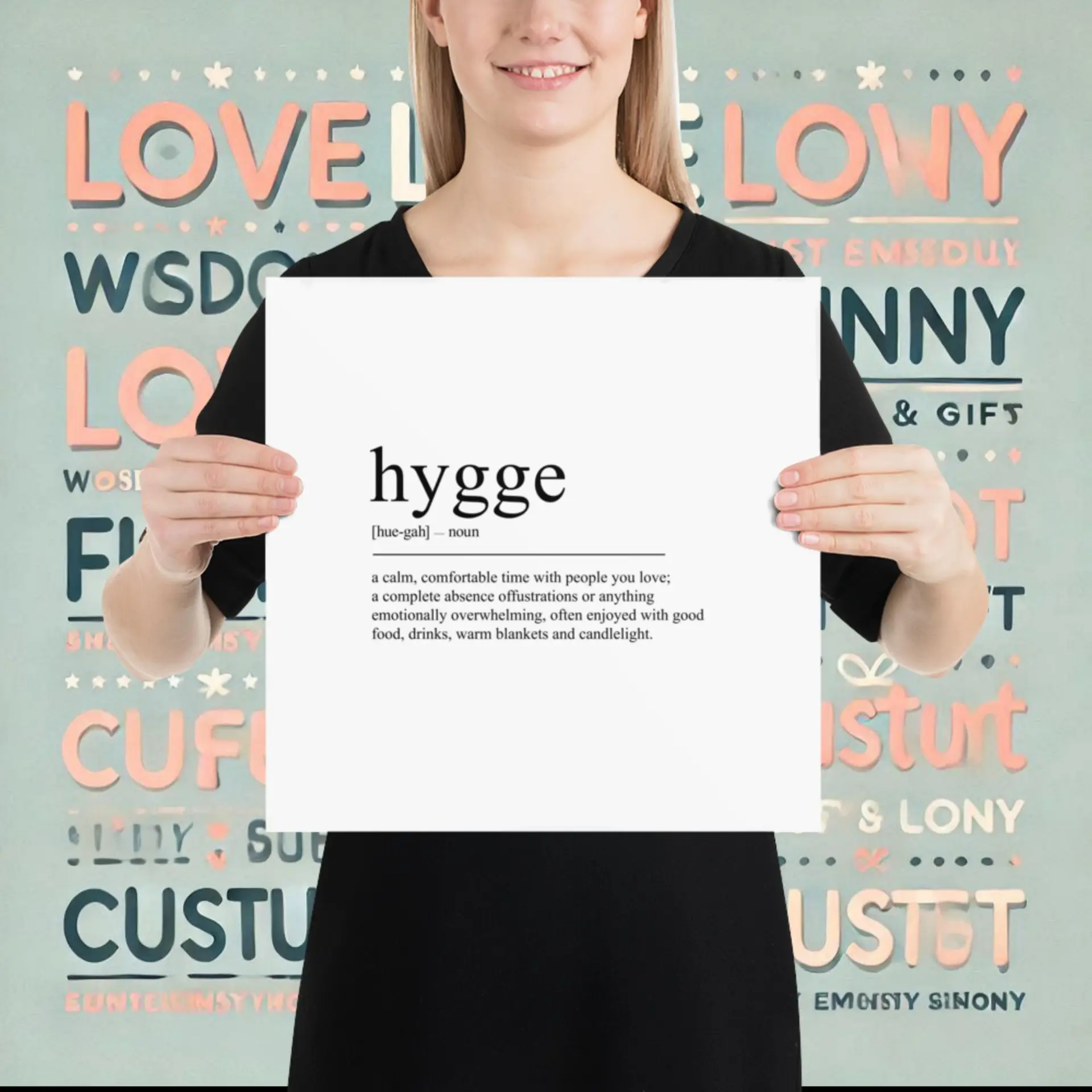 Printed on thick matte paper, the hygge poster (inch) turns a lifestyle into wall art. With its clean typography, it fits perfectly into Nordic or modern homes. Add this piece to reflect your love for simplicity and comfort.