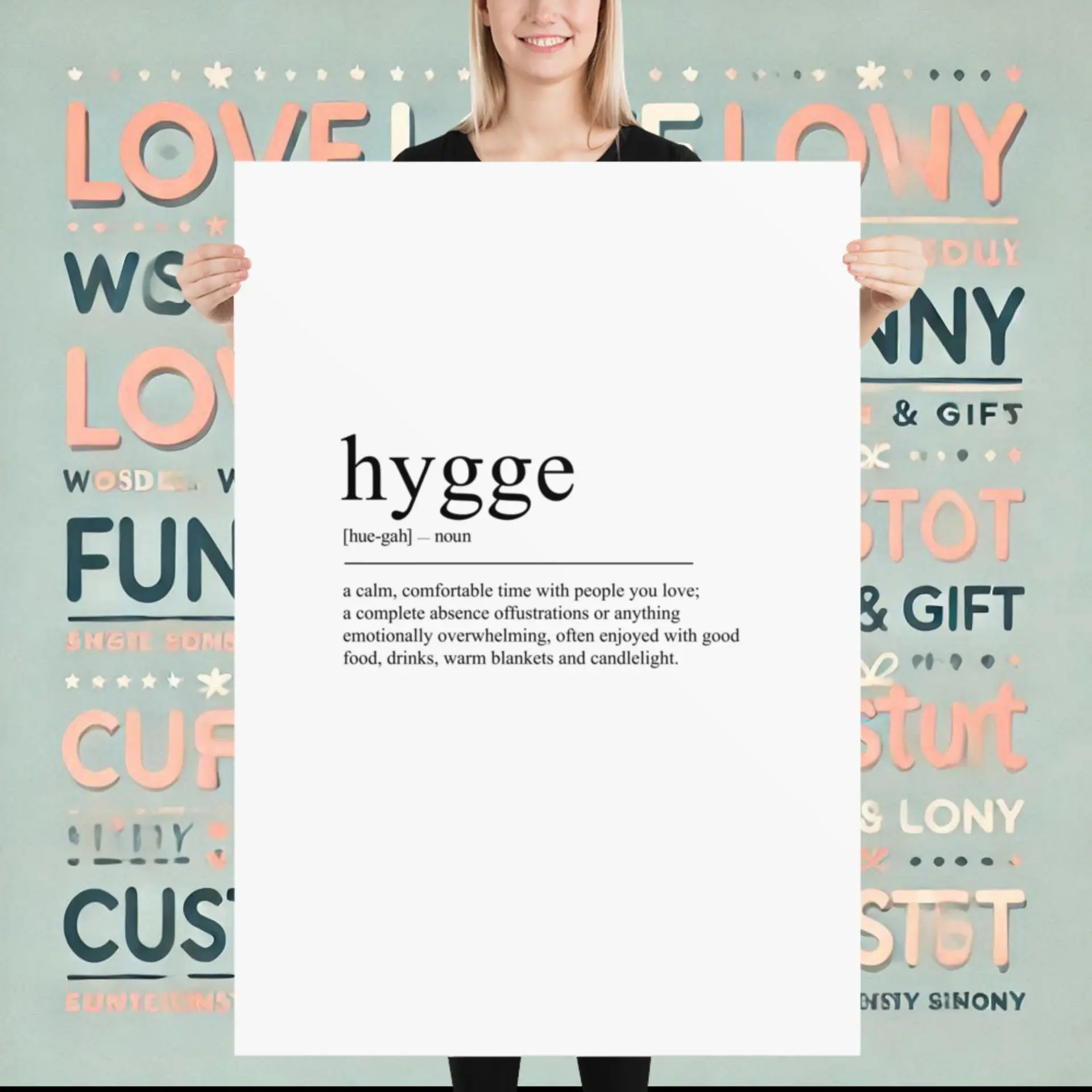 Printed on thick matte paper, the hygge poster (cm) turns a lifestyle into wall art. With its clean typography, it fits perfectly into Nordic or modern homes. Add this piece to reflect your love for simplicity and comfort.