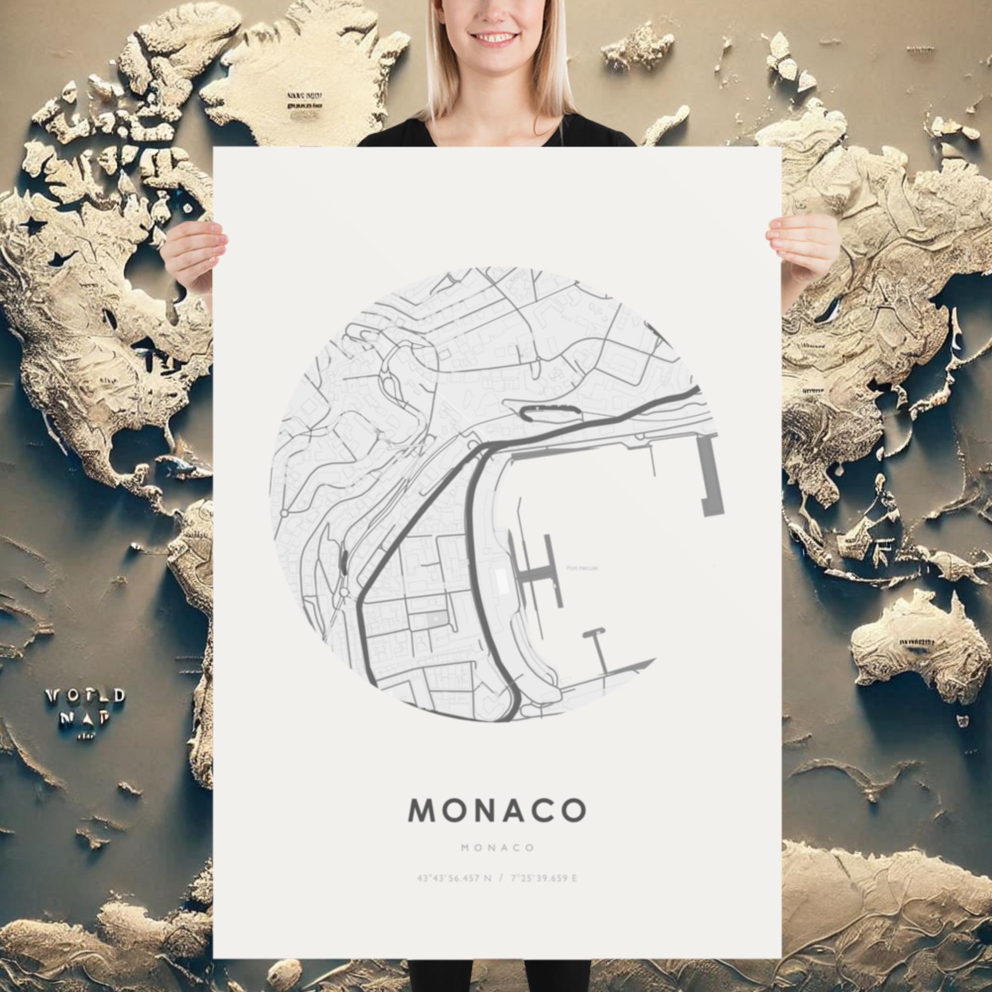 Printed on premium matte paper for a glare-free, gallery-quality finish, the Monaco citymap poster (cm) is a thoughtful gift for Monaco lovers.