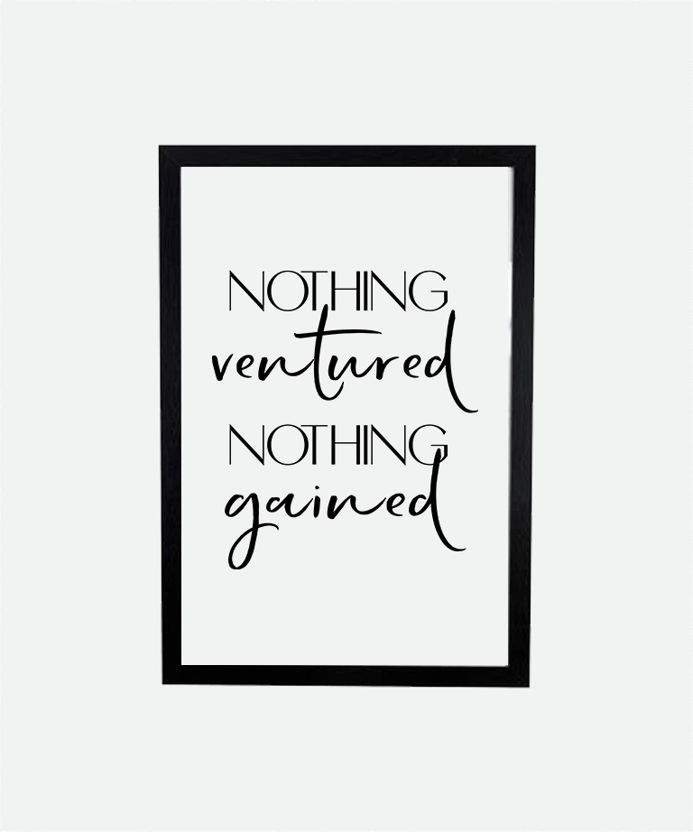 Printed on thick matte paper, the nothing ventured nothing gained poster (inch) balances minimal design with maximum intent. Its clean typography keeps things modern while the message stays timeless.