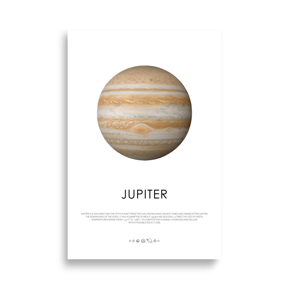 Printed on premium matte paper, the Planet Jupiter poster (cm) brings bold celestial energy to your home or workspace. Order now and let Jupiter inspire your environment with greatness.