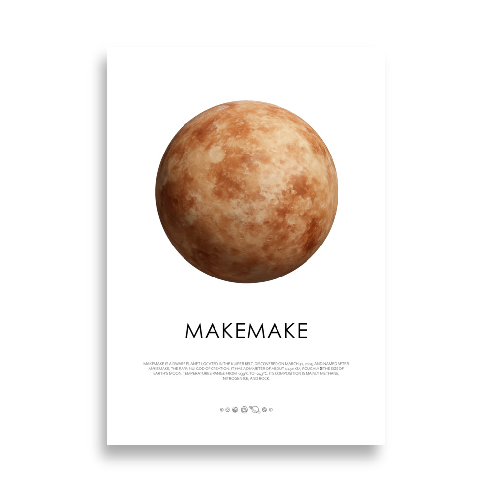 Printed on premium matte paper, the Planet Makemake poster (cm) is a clean, minimalist tribute to exploration and discovery. Order now and bring something truly uncommon into your space.