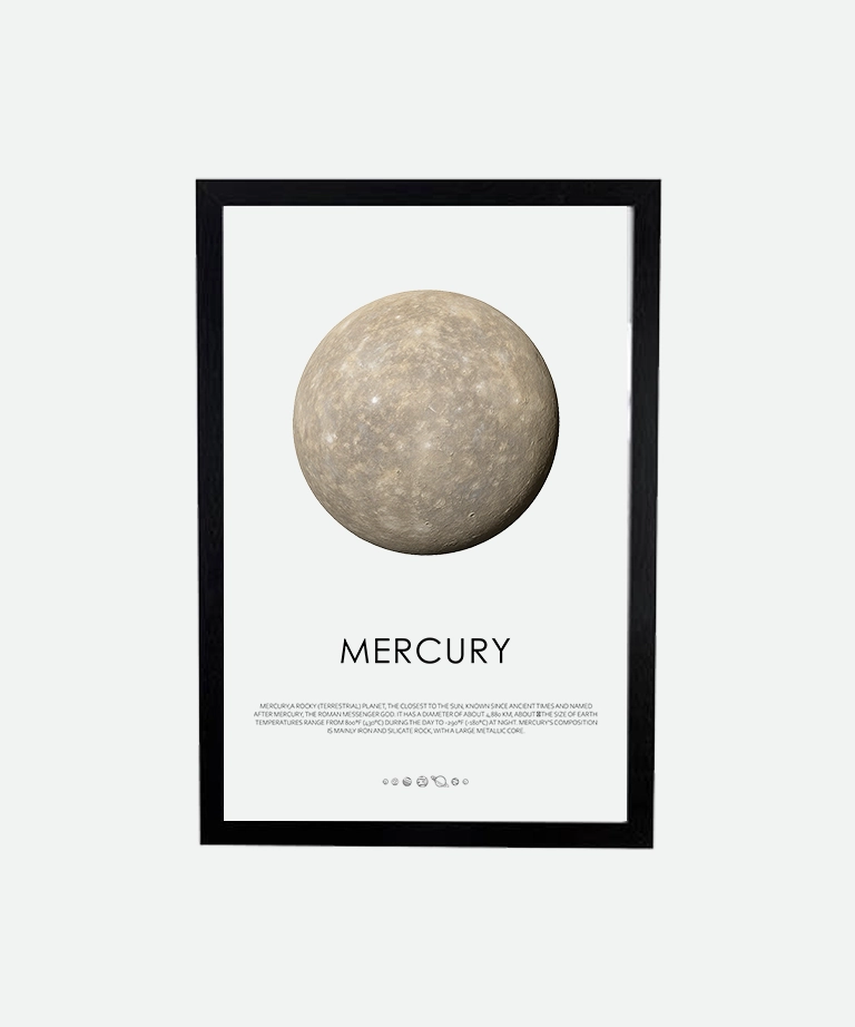 Printed on premium matte paper, the Planet Mercury poster (inch) adds a sharp and thoughtful presence to any wall. Order now and invite Mercury’s agile energy into your space.