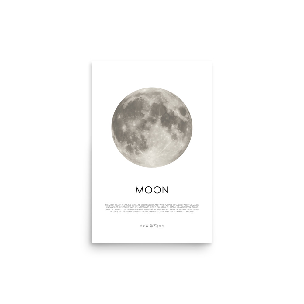 Printed on premium matte paper, the Planet Moon poster (inch) brings lunar beauty into your space. Order now and let the Moon’s calm energy influence your interior.
