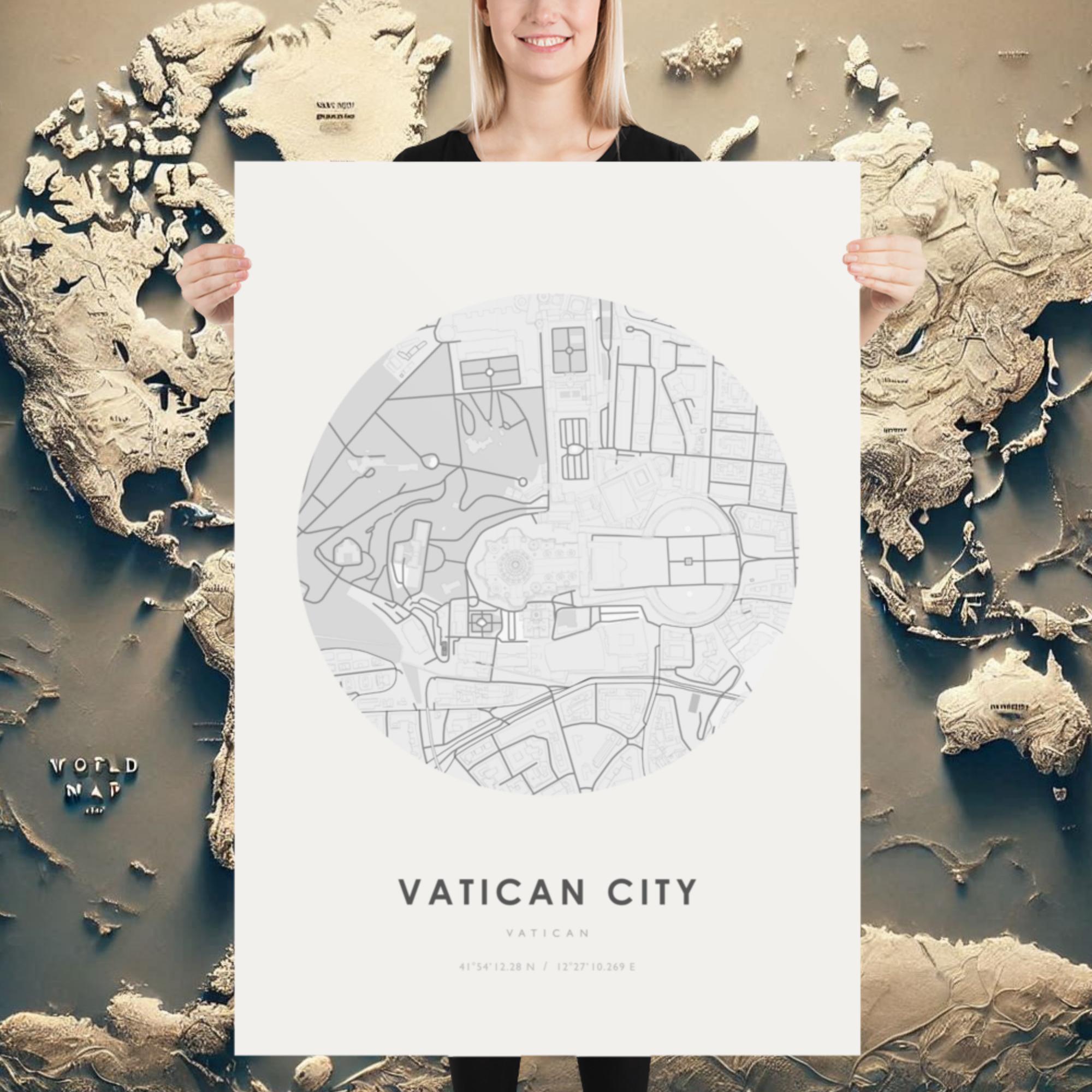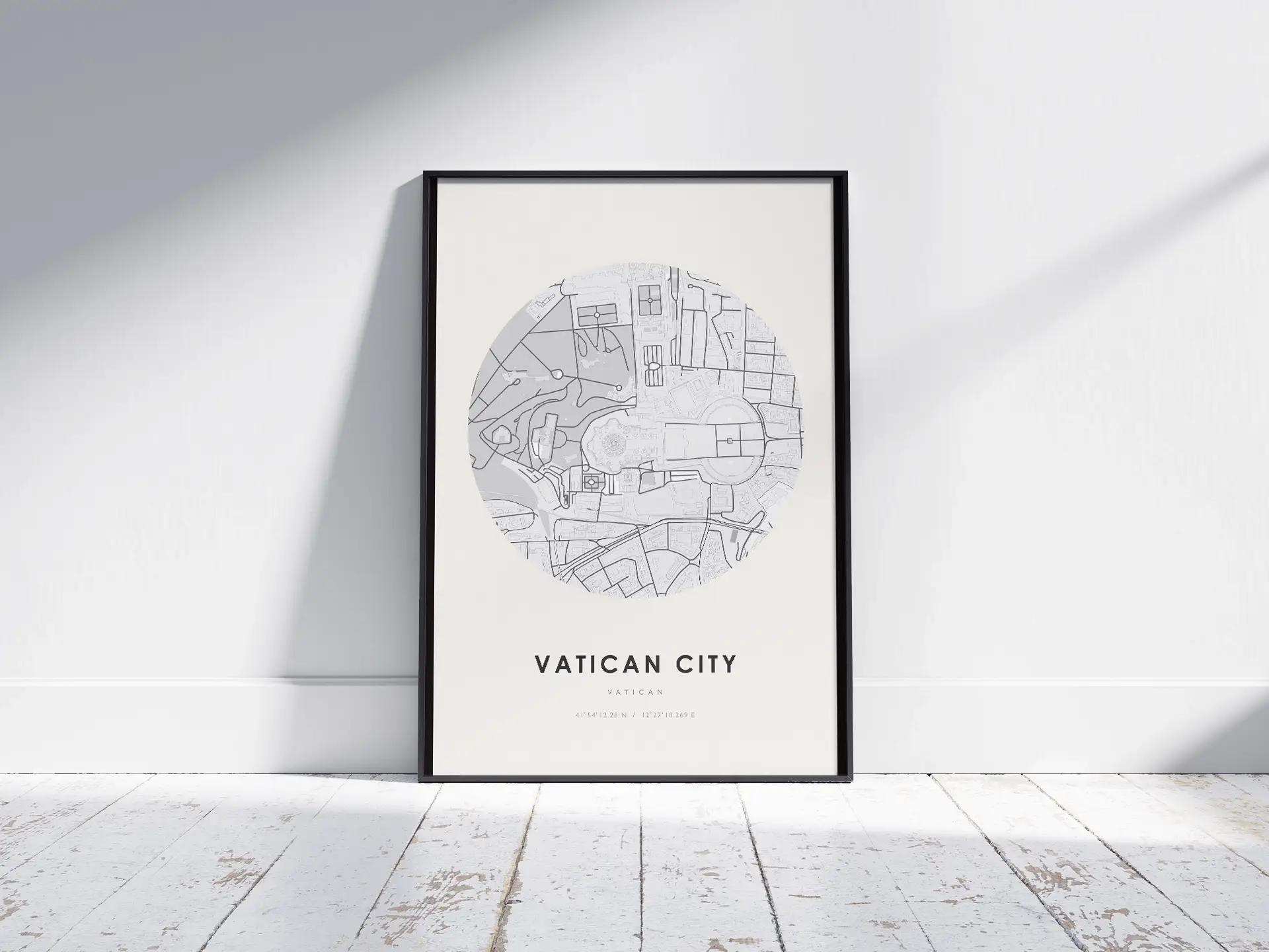 Though compact in size, Vatican City is rich in meaning. This frameless citymap poster (cm) doesn’t attempt to portray its art, religion, or landmarks—instead, it offers a subtle and contemporary tribute to its precise, structured layout. Perfect for admirers of architecture, travel, religion, or minimalist design.