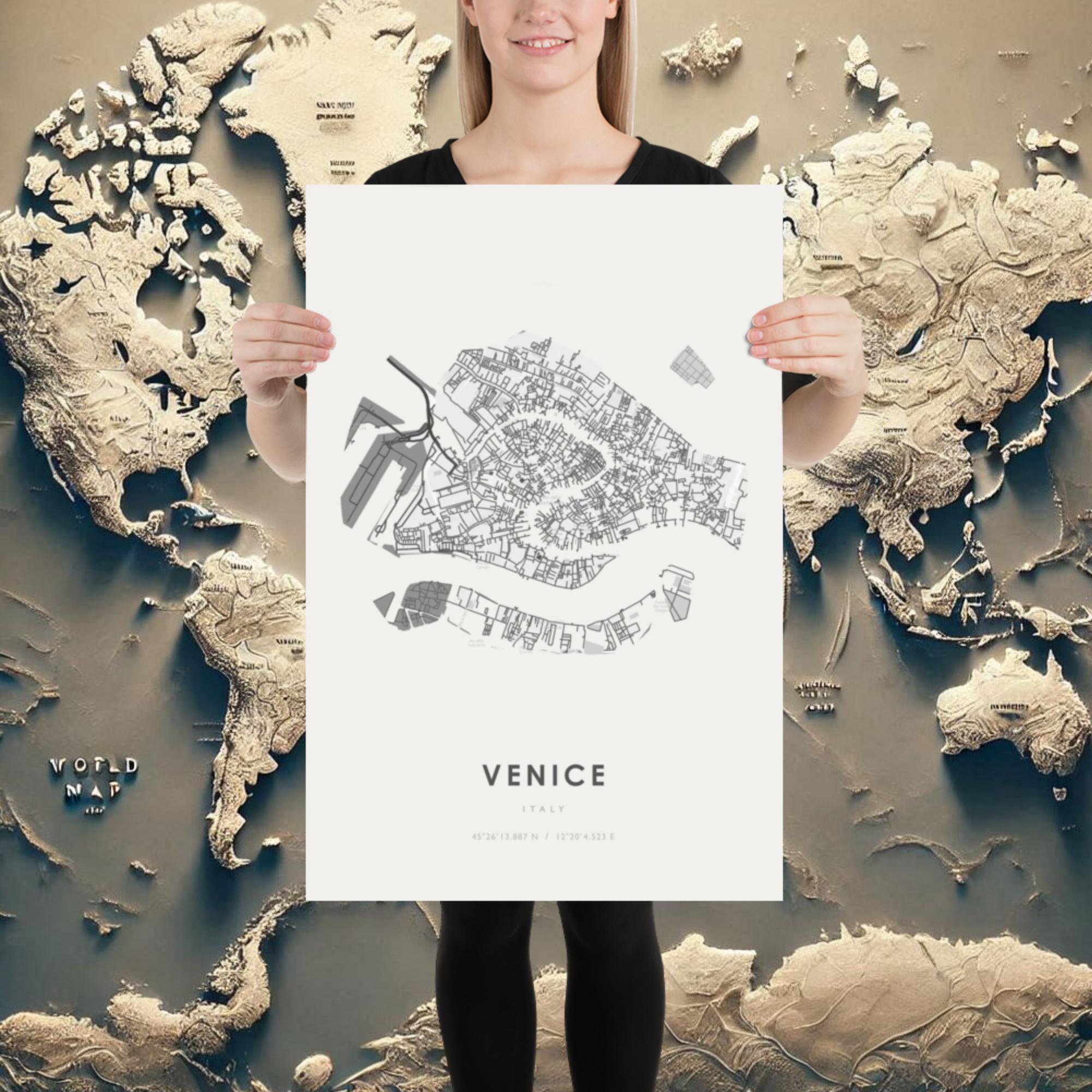 This frameless poster isn’t meant to portray the romance of gondola rides or the color of the Carnival—it celebrates Venice from a different perspective: its geometry, its layout, and its timeless form. Whether you’re a travel enthusiast, architecture lover, or someone with a personal connection to the Floating City, this print turns your affection for Venice into elegant wall décor.